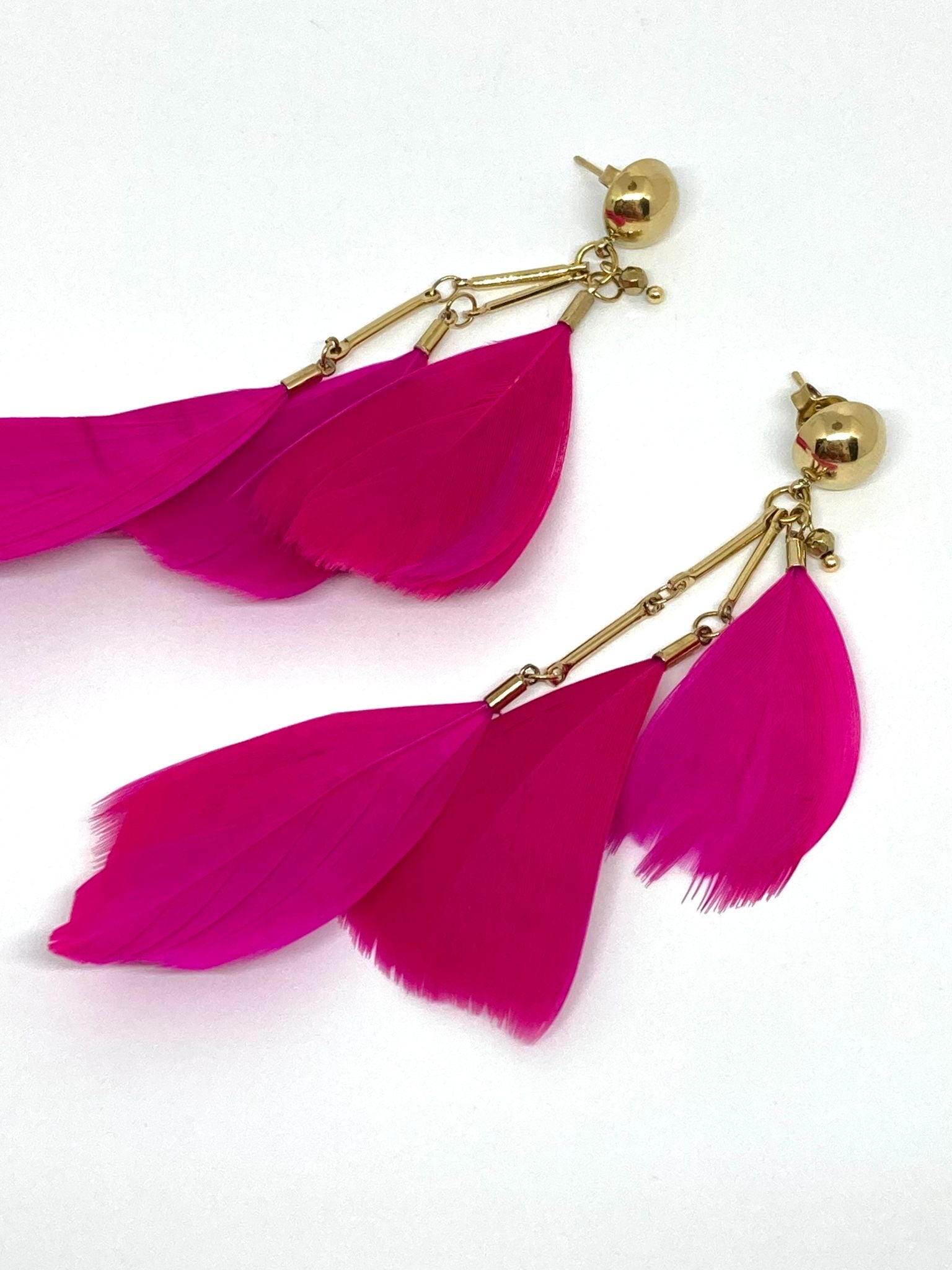 Boucles d’oreilles Plume - Doré & Fuchsia
