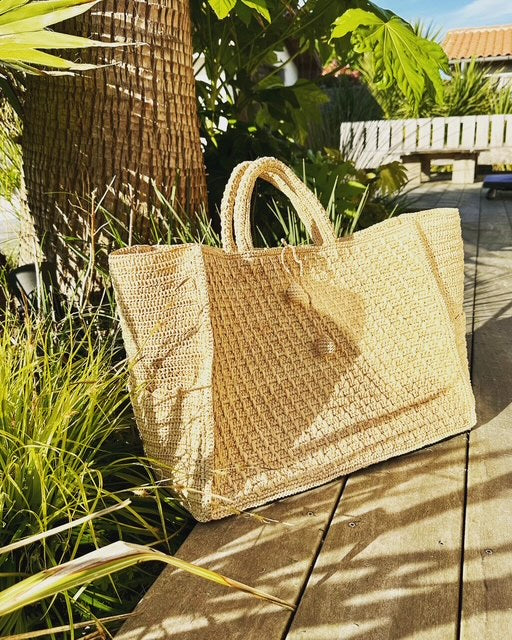Tressé à la main à Madagascar, ce cabas en raphia incarne tout le charme de l’artisanat malgache.