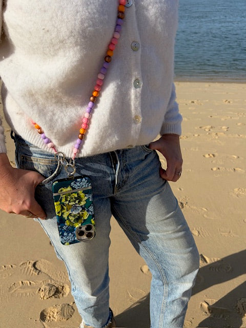Chaîne de téléphone en perles de bois multicolore - Colombie