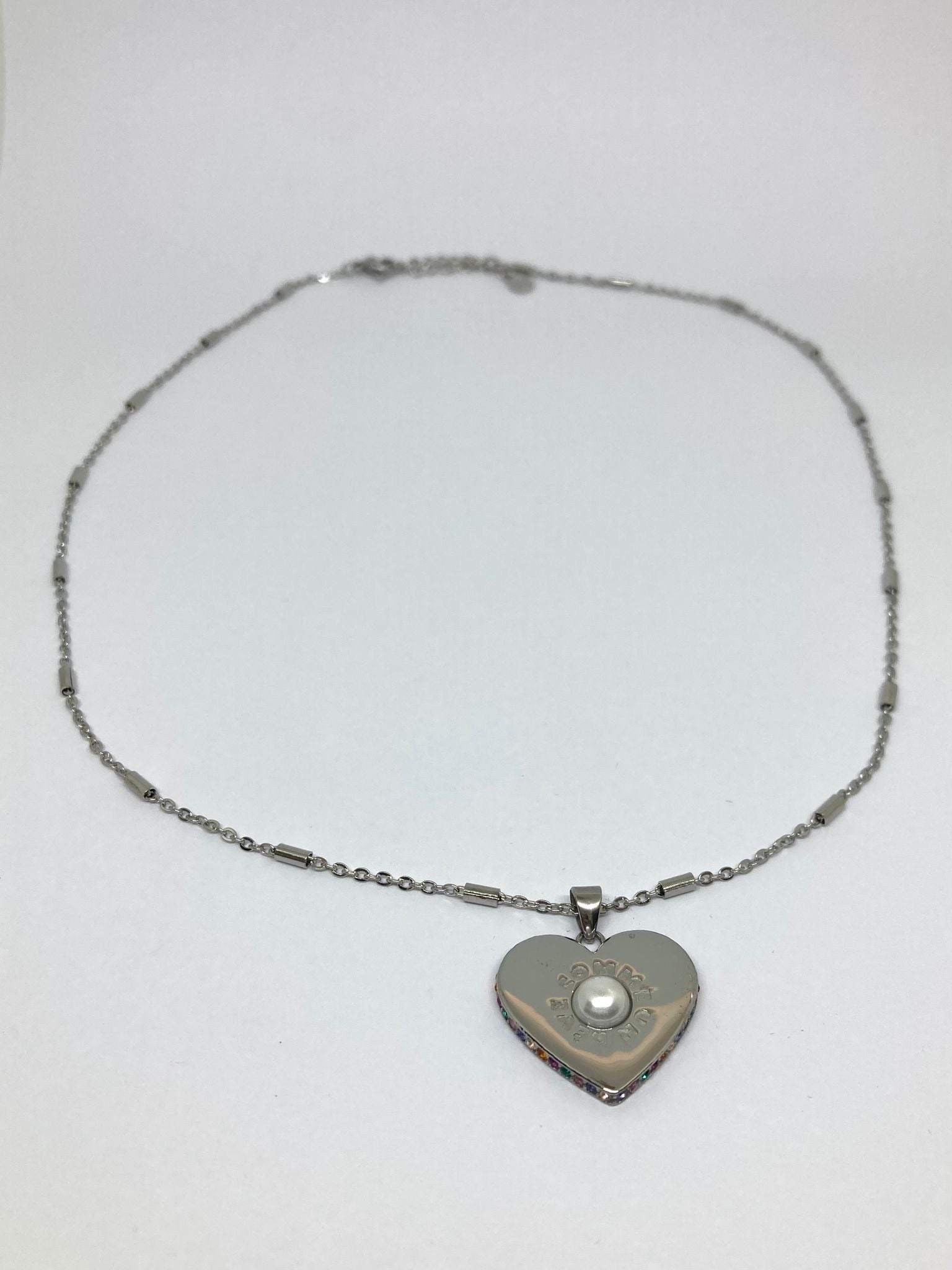 Collier en acier inoxydable argenté avec pendentif Coeur