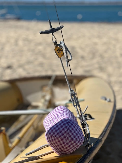 Un tissu vichy mauve, dans un esprit Brigitte Bardot très rétro avec cette touche vintage douce que l’on adore.