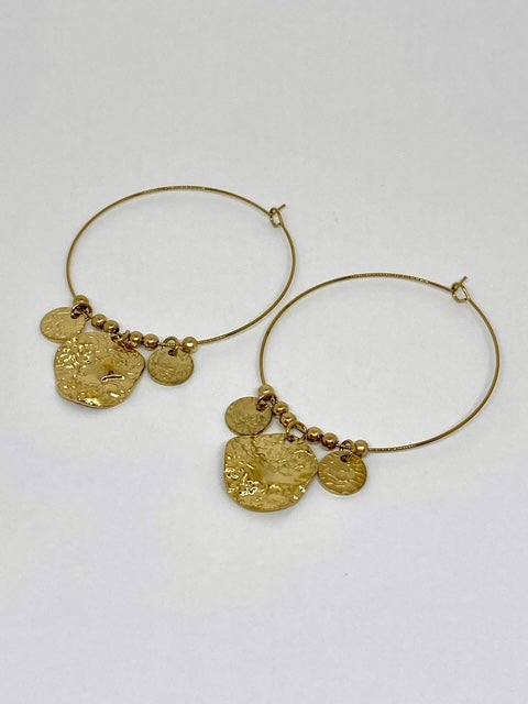 Créoles en acier inoxydable doré avec médaillons