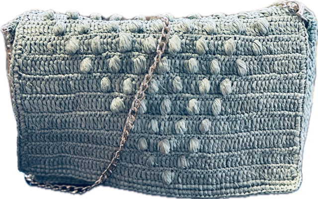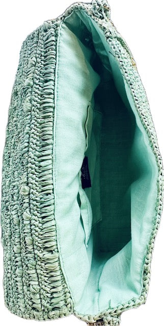 Un accessoire lumineux, au coloris vert d’eau apaisant, qui conjugue style, authenticité et finesse artisanale.